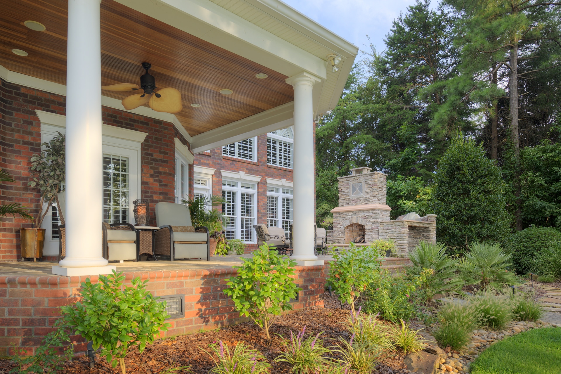 Outdoor Patio with Built-in Grill & Stone Fireplace
